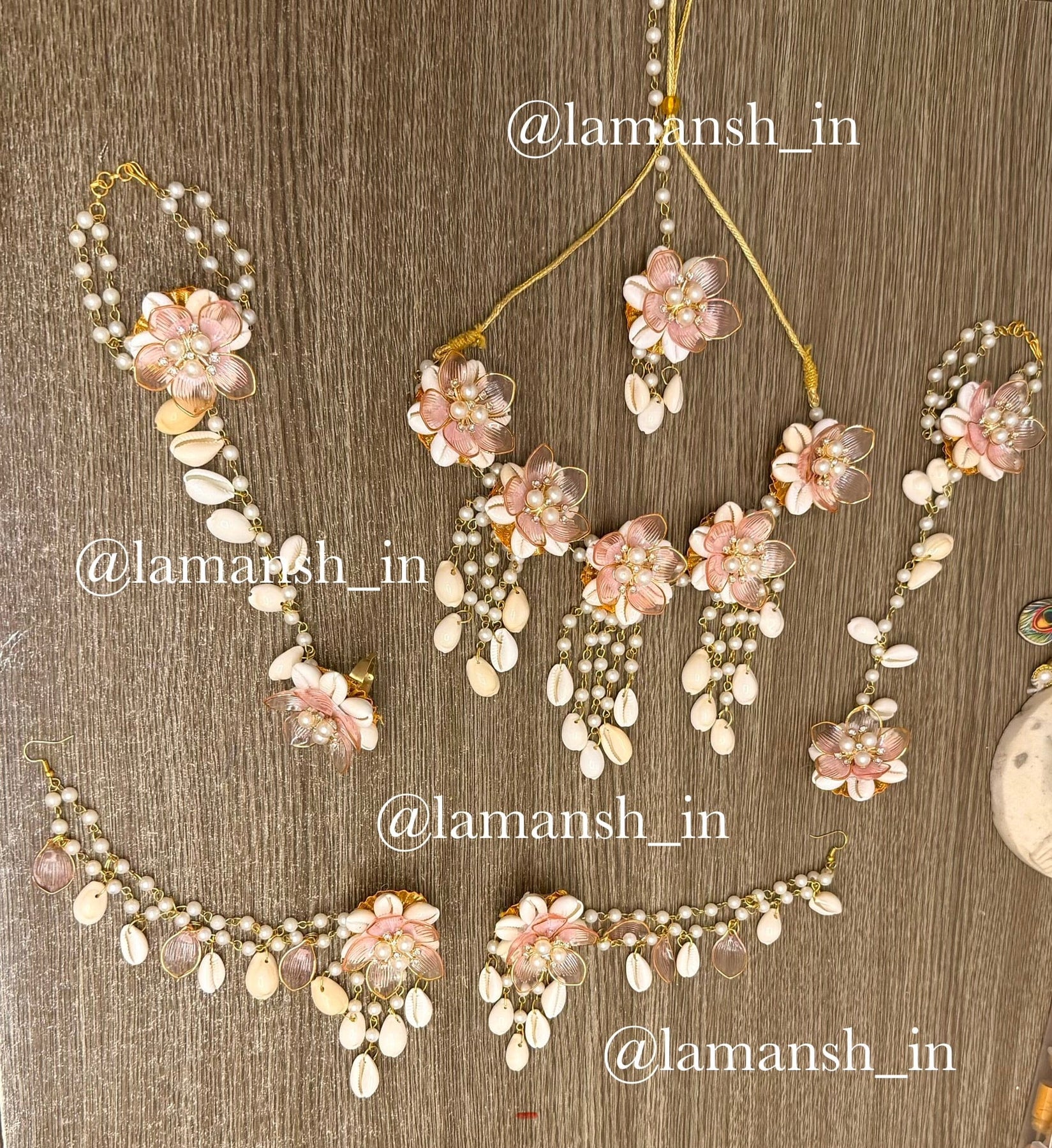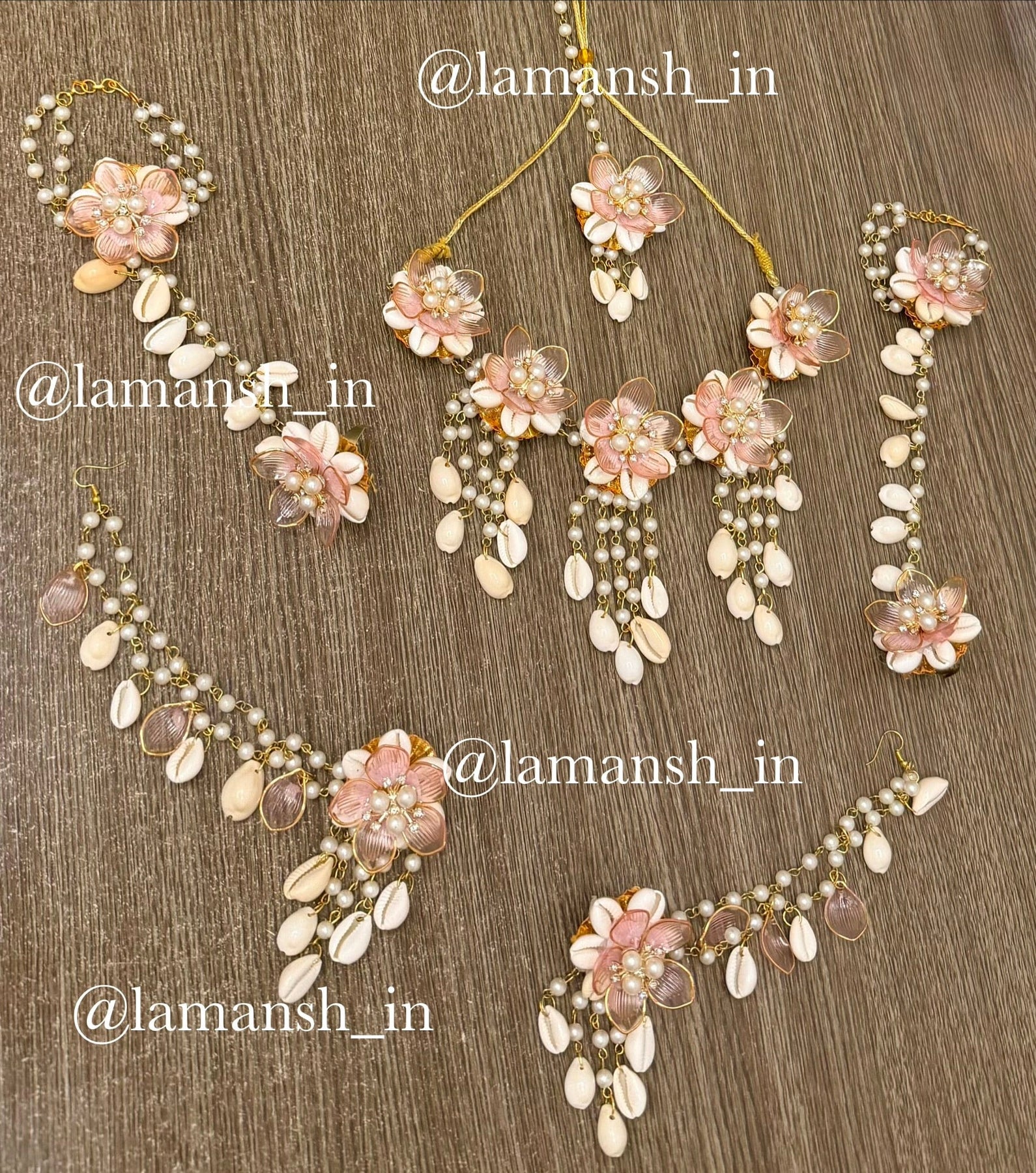 Acrylic Flowers 🌸 Peach Floral Shells Jewellery set for Haldi mehendi ceremony for bride