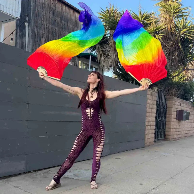 LAMANSH Foldable Big Size Hand Fan for using as Dance prop in events, weddings, annual functions
