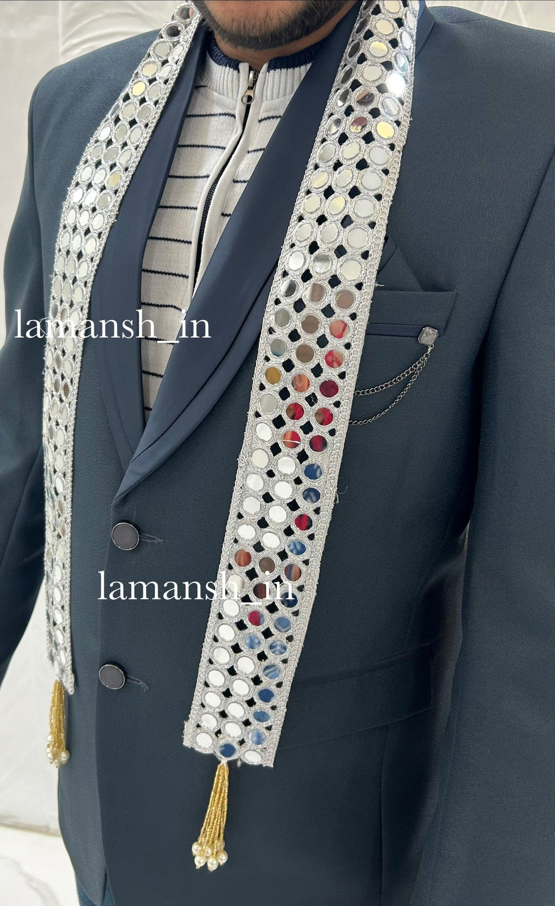 LAMANSH Mirror work fabric Guests Welcome Barati Swagat Mala / Dupatta / Stole / Patka's For Weddings