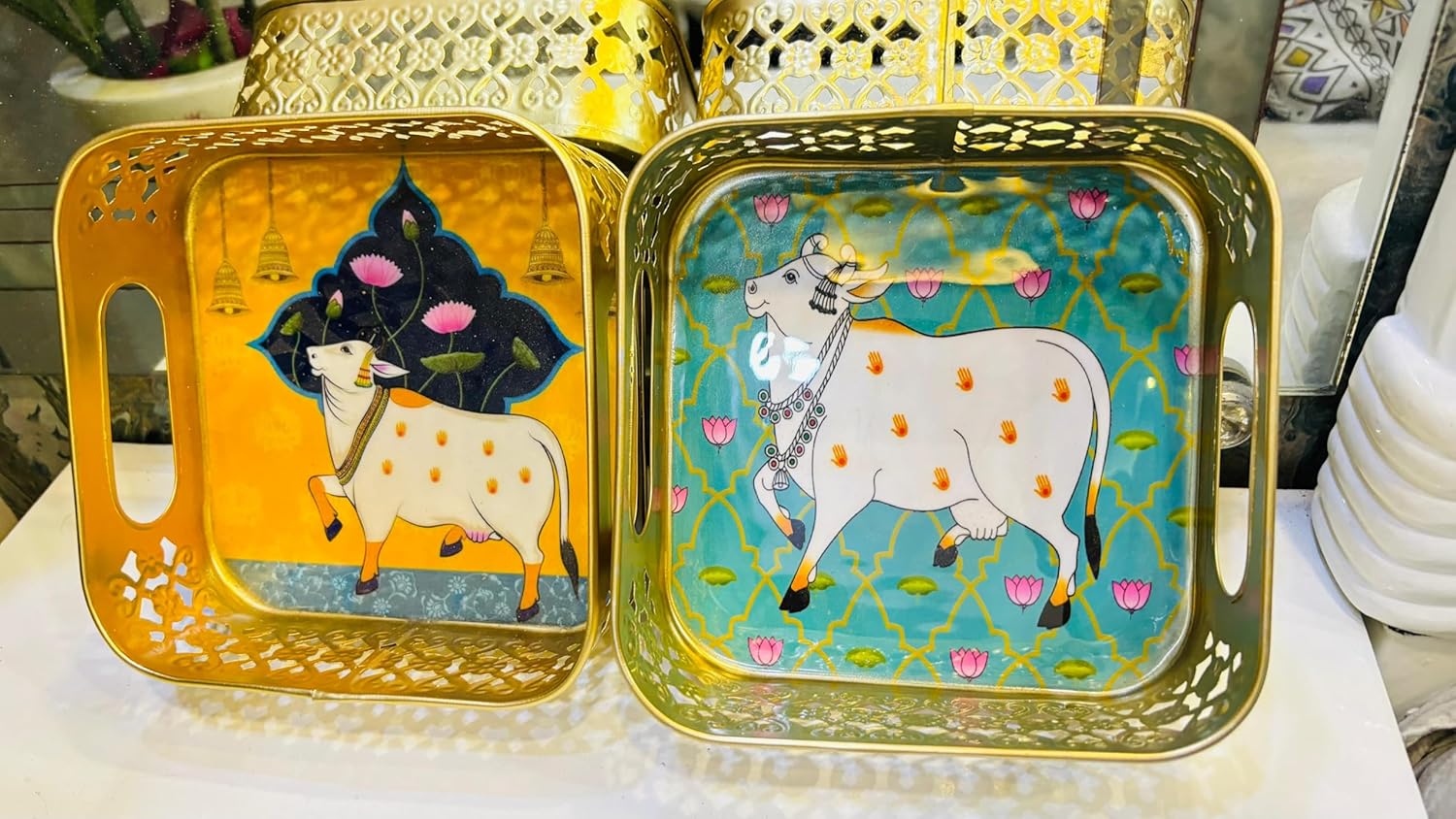 Keywords: Pichwai, Floral, Metal Meenakari, trays, Diwali Decor, Navratri Gifts, Pooja Ceremony, Wedding Favors, Return Gifting, Buri Nazar Protection, Festival Decor, Home Decor, Office Decor, Indian Festivals, Wedding Decor, Gift Ideas.