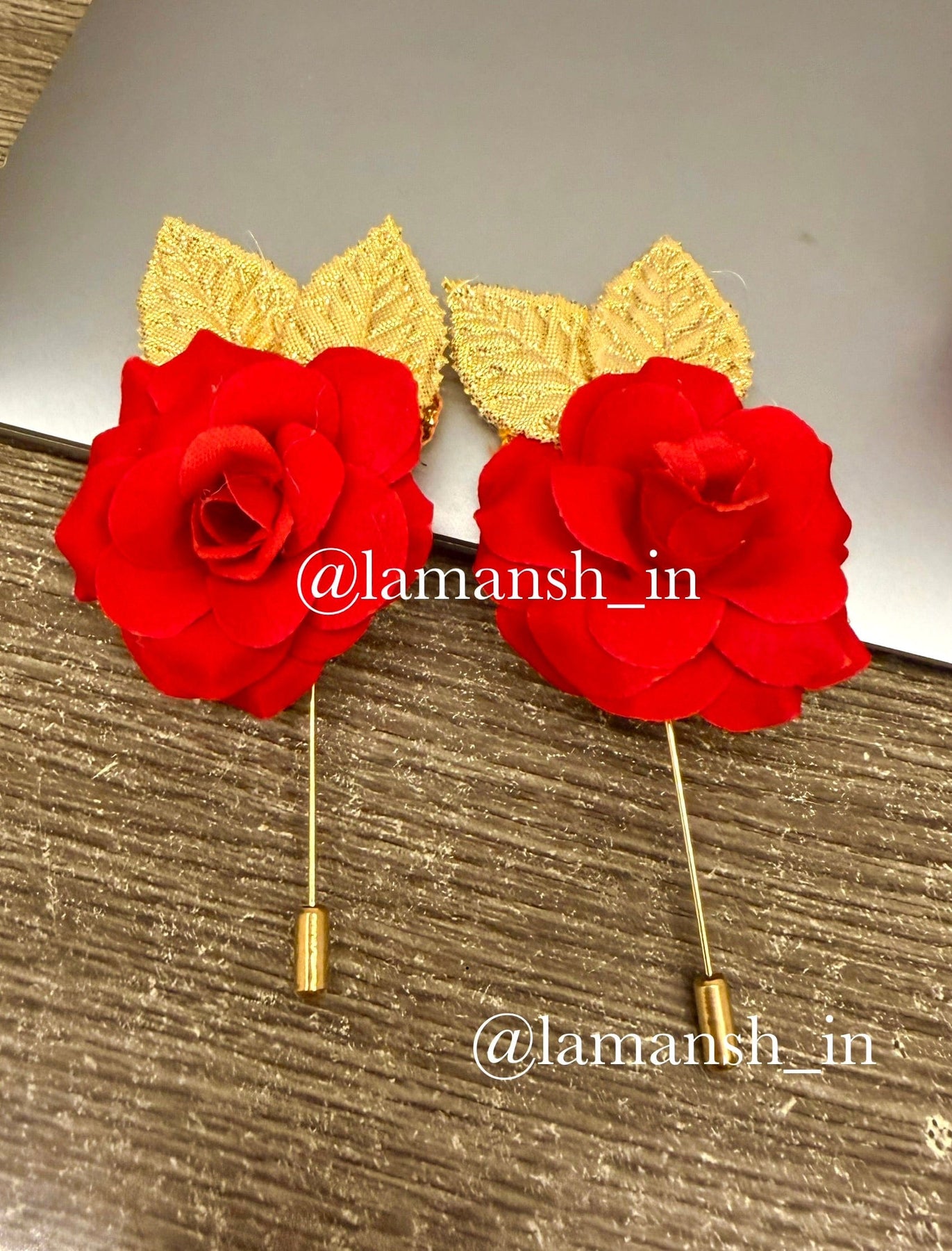 35 rs each on buying 50 pcs / WhatsApp at 7726912365 to order 🔥 Broaches Rose🌹 floral brooches with golden leaves for welcoming guests / Barati swagat items for weddings , pooja ceremony