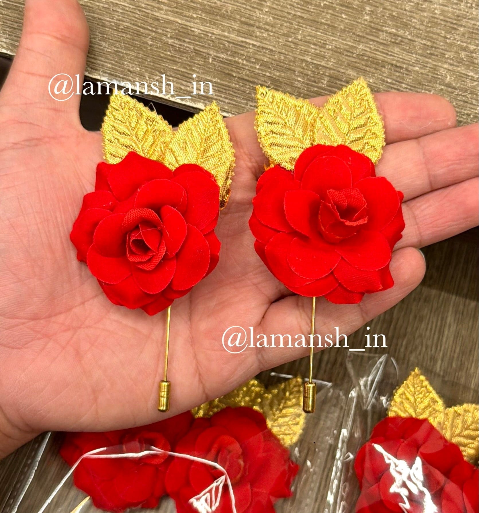 Rose🌹 floral brooches with golden leaves for welcoming guests / Barati swagat items for weddings , pooja ceremony