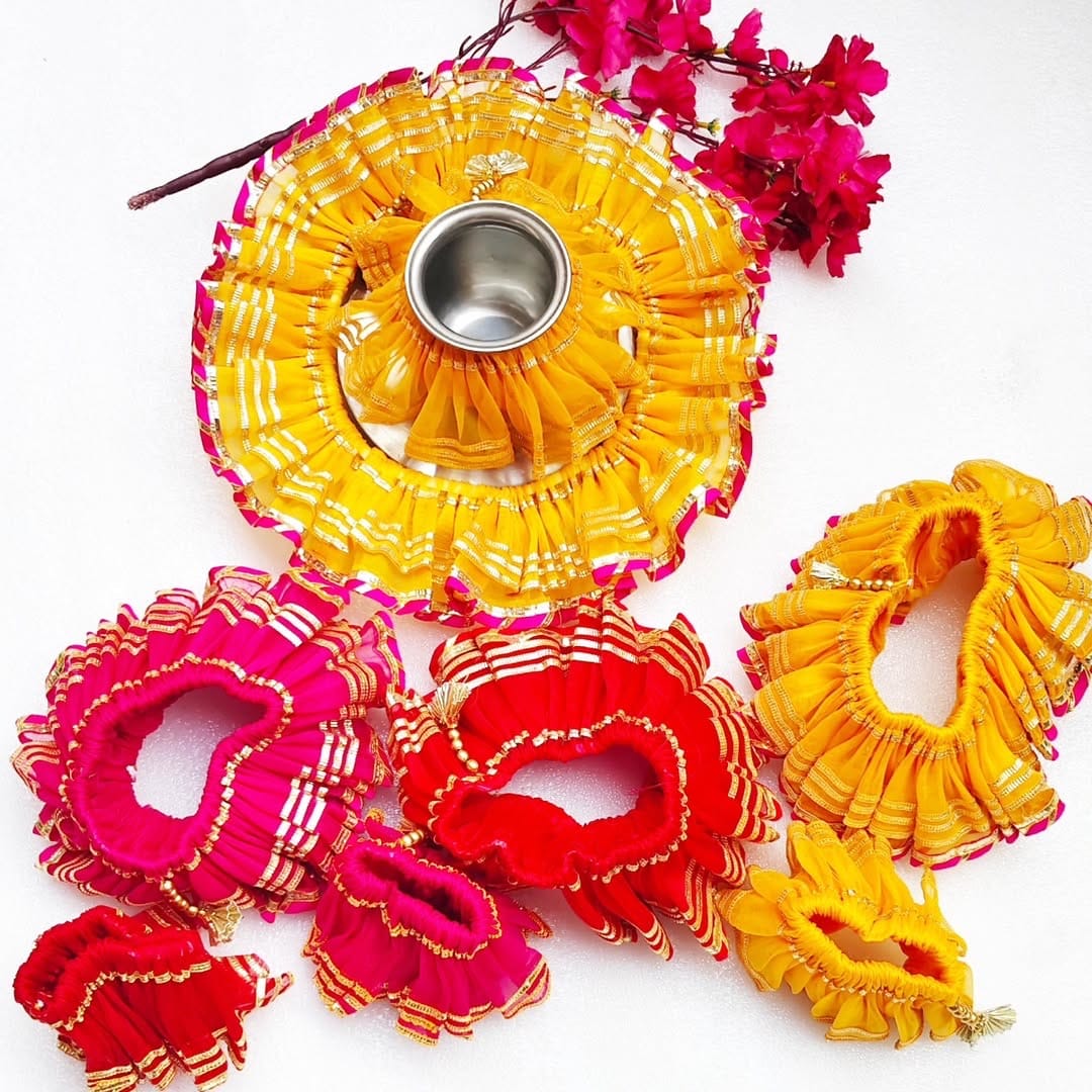 Combo of Pooja Thali frill and Lota Cover frill for Gangaur Pooja, Karva Chauth,Shagun / Wedding favours for guests and bridesmaids