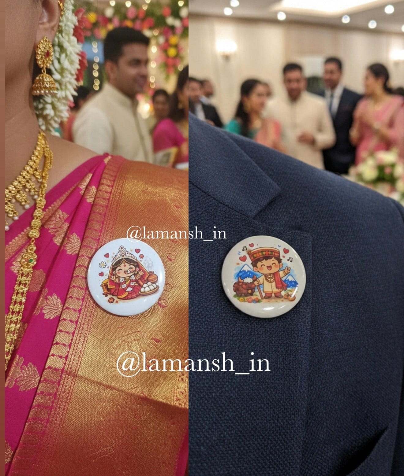 LAMANSH ( Set of 50 ) Pahadi Style Wedding Badges Brooches for Wedding Guests / Wedding Badges for Groom and bride side Guests