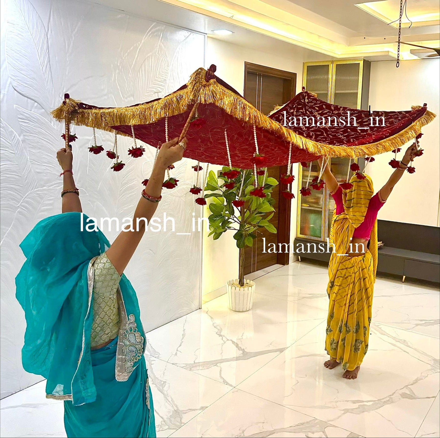 Phoolon ki Chaddar Traditional Indian/Punjabi/Arabi Wedding Bridal Entry Heavy Velvet cloth with gota and artificial flowers and Sticks / Bride entry Chunari for wedding planners