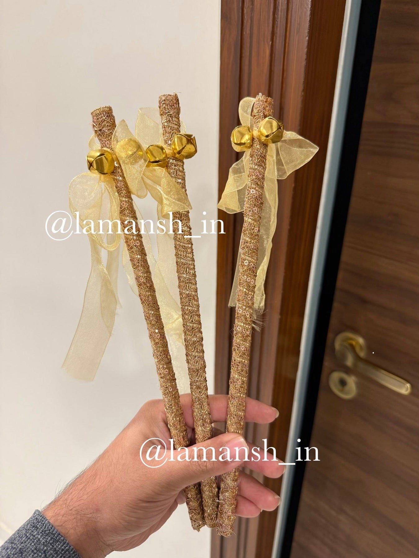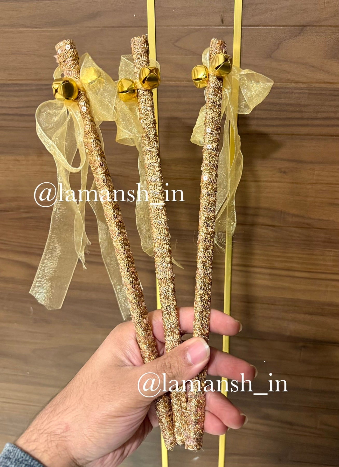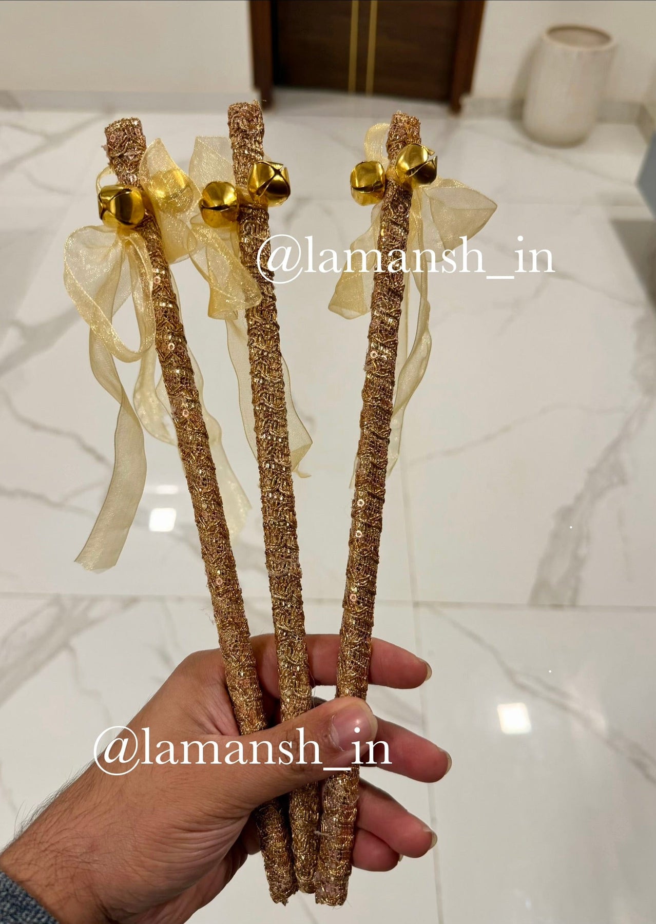 50 rs each on buying 50+ pcs / WhatsApp at 7726912365 to order 🔥 Ghungroo sticks 1 Golden Lace Ghungroo Sticks / Wedding Rattles ✨ for guests welcome / Phera&