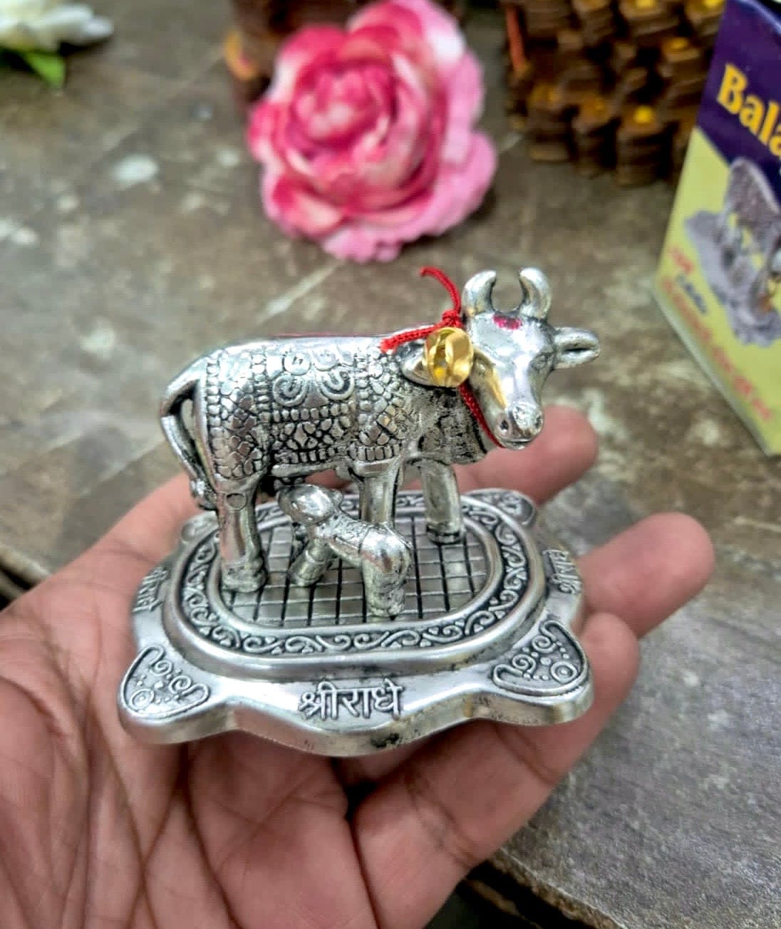 Mini Kamdhenu Cow with Calf statues for return gifting in 🎁 weddings, Pooja ceremony, Diwali Navratri Ganesh Chaturthi any religious event, Mangal path ceremony kirtan, etc.